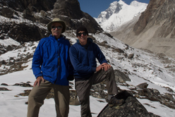 Phil Parkinson (Rio Rancho, NM, right), and Mike Alltucker (Springdale, UT, left), high on a ridge above Makalu Base Camp (Nepal) with Lhotse and Everest (Kangshung Face) in the background. With the help of an amazing group of Sherpa guides and porters, Phil and Mike trekked 23 days in the Himalayas to a camp at the base of Mt. Makalu (5th highest peak) encountering sweltering heat and humidity, plenty of rain and wind along with snow and ice at high altitude. The Weatherpants and Adventure Tops performed marvelously throughout the trek, showing little wear at trails end, easily outperforming their owners. Outstanding Product(s)!