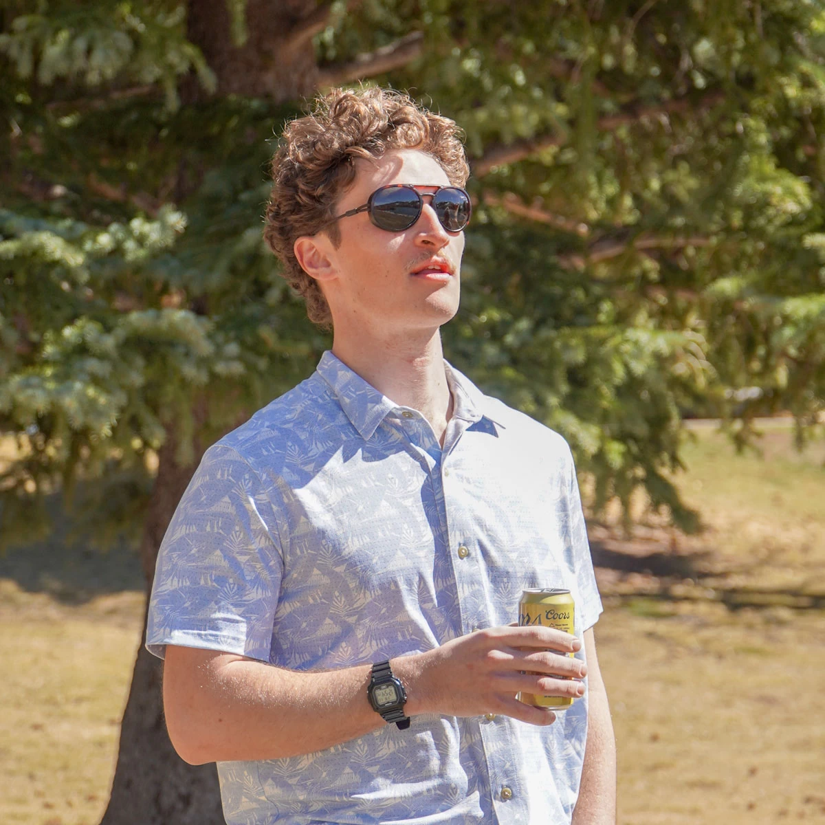 - Subtle light blue palm tree print
